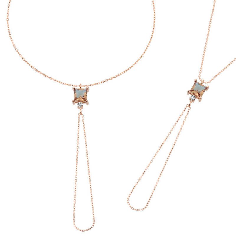 Gümüş Rose Zültanit Taşlı Kare Şahmeran